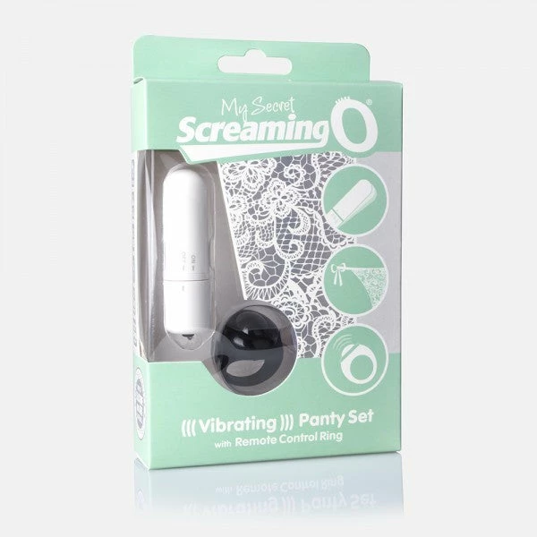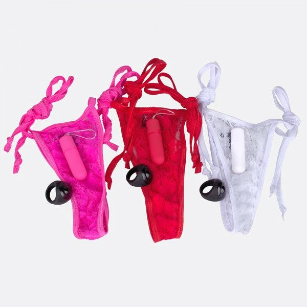 My Secret Vibrating Panty Set puts the power of pleasure at your fingertips with a powerful vibrating bullet that fits discreetly into a side-tie lace panty to keep it in place. This sexy and subtle mini vibe is powered by a clever remote control that looks like an ordinary finger ring and makes it easy for couples to play in public – even up to 50 feet away! Slip the bullet into the panty’s convenient little pocket and enjoy powerful stimulation directly on her sweet spot.