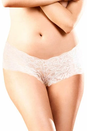 Elegant. Simple. Timeless. Low rise floral lace boyshort pairs well with white pasties, bridal lingerie, or nothing at all.