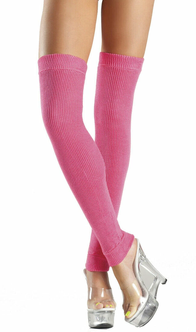 Acrylic knit thigh high leg warmers. Super soft with a lot of stretch.