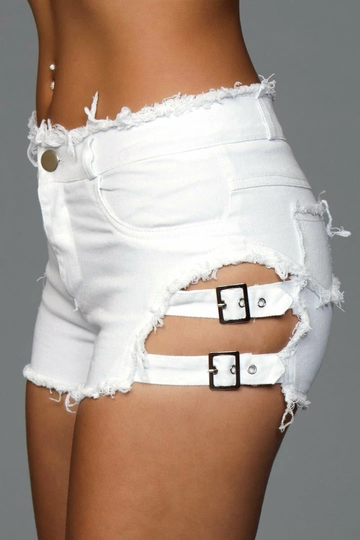 BeWicked J10WT Buckled Down Denim Shorts – White Apparel