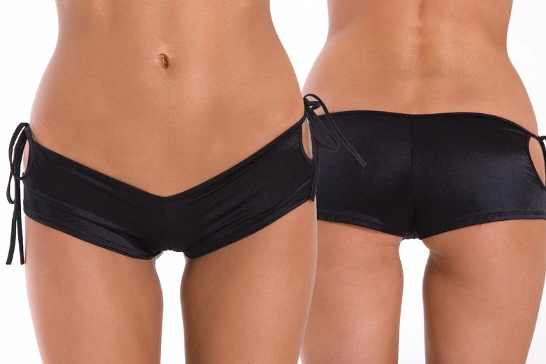 Tie side booty shorts with cutout keyhole details.