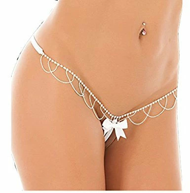 Tease your lover with this delicate beauty g-string featuring bead string front with flirty bow and open crotch.