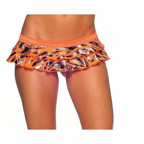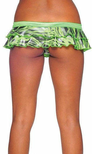 Sexy zebra print mini skirt with double ruffle layers and solid waistband.