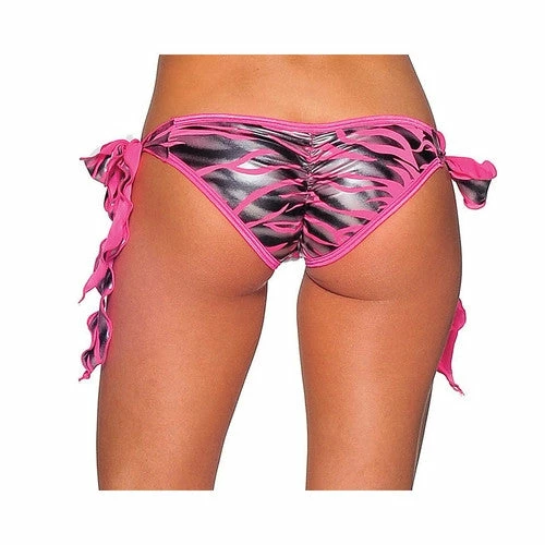 Zebra print scrunch butt Rio bikini bottoms with frilly ribbon tie sides.