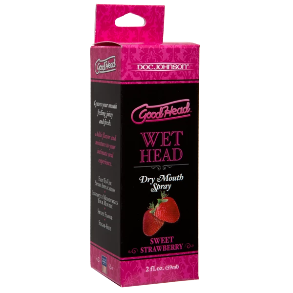 Banish dry mouth during oral sex with GoodHead Wet Head Dry Mouth Spray. Available in two mouthwatering flavors of Juicy Apple and Sweet Strawberry, this dry mouth spray comes in a handy 2 fl oz. bottle, and provides instant moisture and fresh breath. A couple spritzes is all you need for a night of sensual fun! Sugar-free, Vegan Friendly, Paraben-Free and Body Safe.