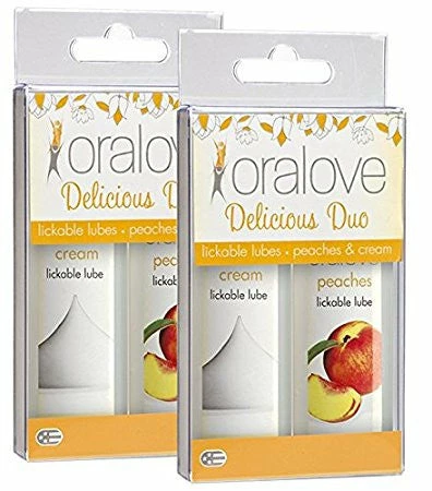Peaches & Cream: Bring dessert into the bedroom tonight with these delicious peaches & cream lubricants. Use separately or combine them to make her body your tongue-tying tasty treat. So sweet and creamy, one lick will leave you both wanting more.