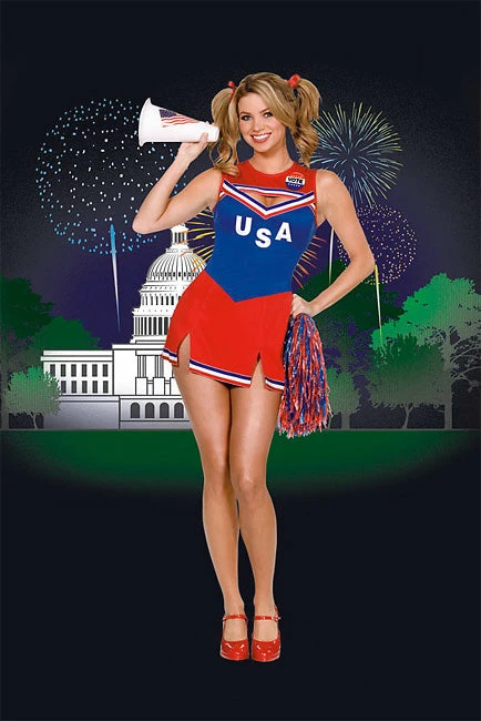 Stretch knit dress with sequin appliqué neckline and attached chiffon cape. Includes beaded headdress, 2 vinyl arm bands and 2 vinyl wrist cuffs. (6 piece set). Made of 100% polyester