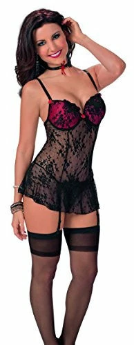 Lace and embroidered teddiette with adjustable straps and garters, molded cups, criss cross clasp back with thong back