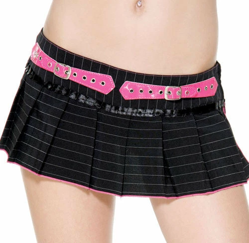 Black Forplay Clubwear Pleated Skirt with Pink Buckle Detail.