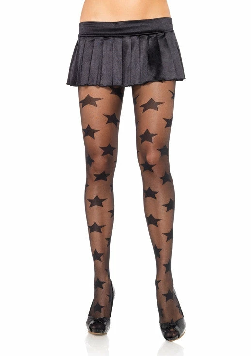 Spandex sheer pantyhose with woven opaque star print