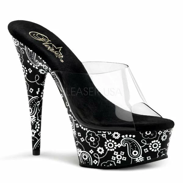 6″ Stiletto Heel Bandana Print Platform Slide.