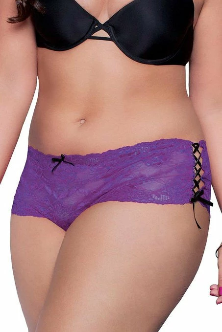 An added bonus on these lace boyshort wonders: open crotch and side lace-ups.                      Â