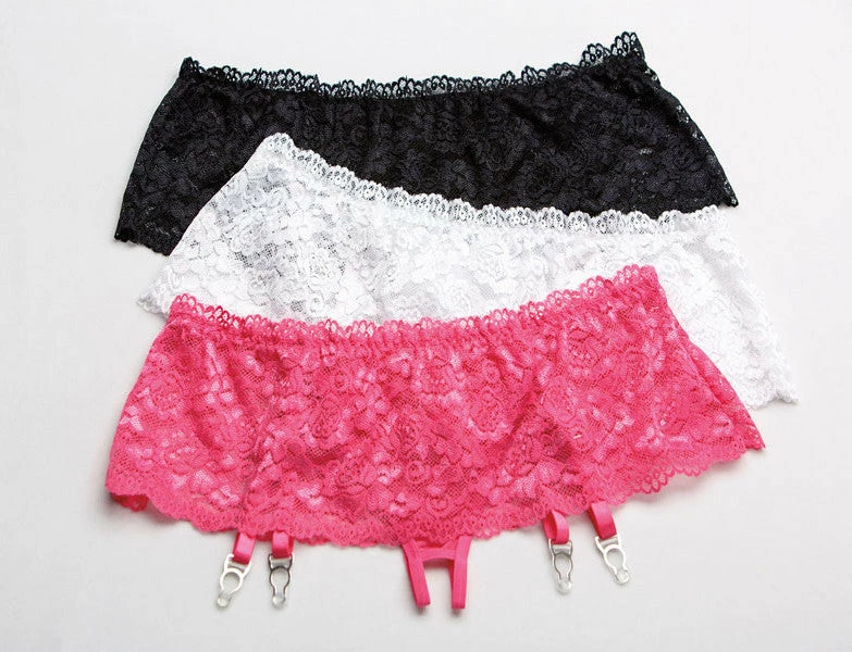Shirley of Hollywood Lace Gartini with Attached Crotchless Thong