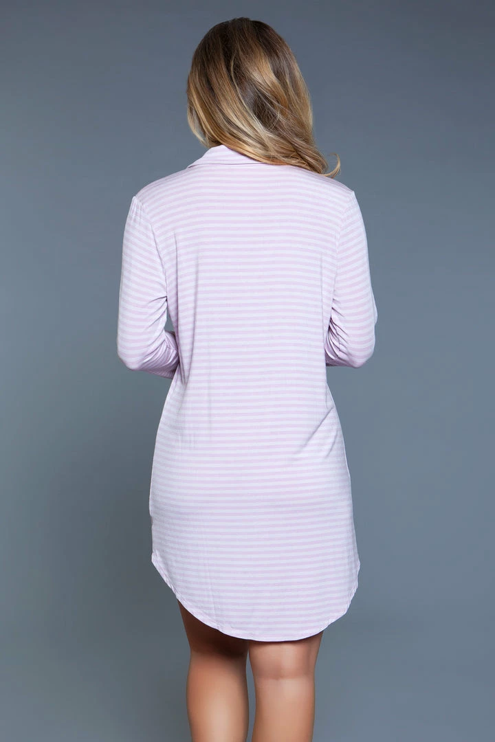 1 piece notched collar long-sleeves sleepshirt with front button closure and chest patch pocket and traced with contrast pipping.