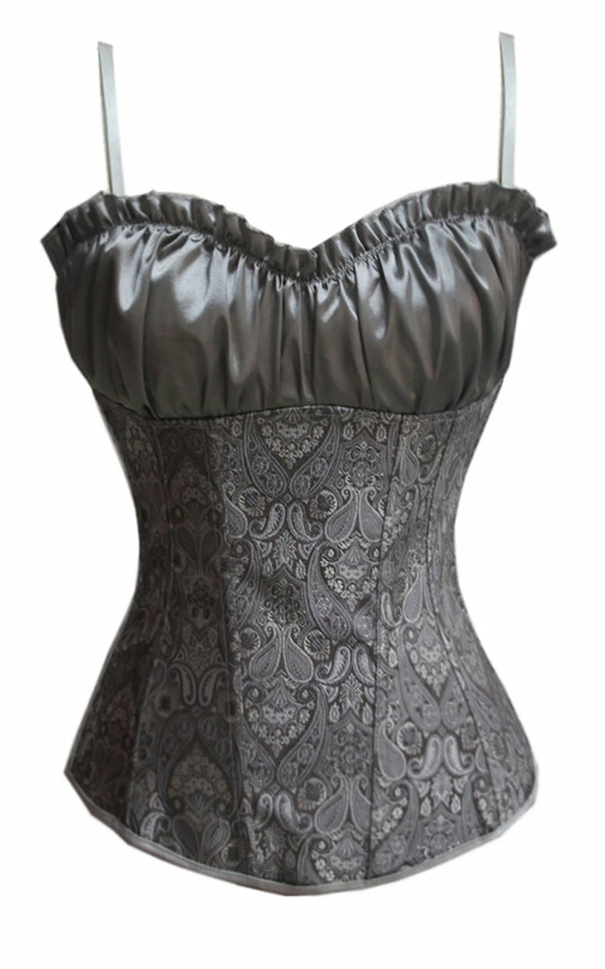 Satin Cross Tie Back Strap Sling Corset Grey